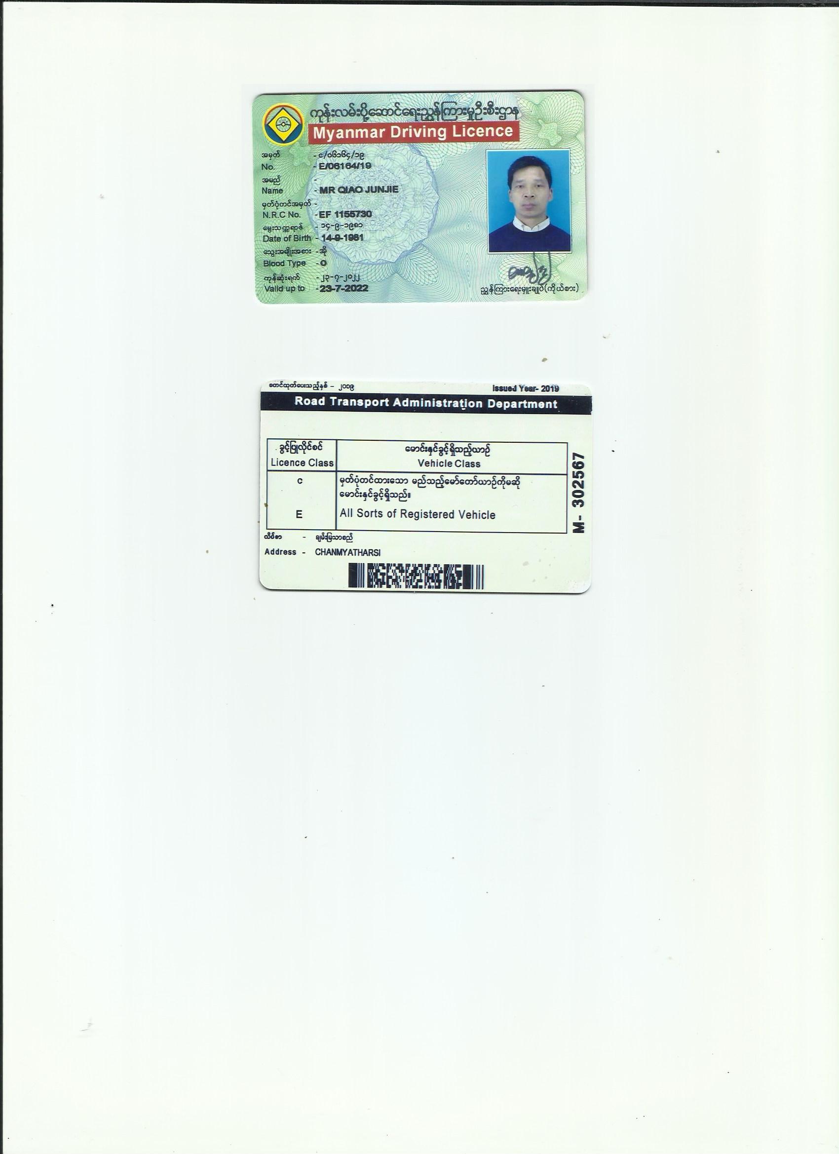 咸陽駕照翻譯公司 咸陽車管所指定翻譯公司 緬甸駕照翻譯模版