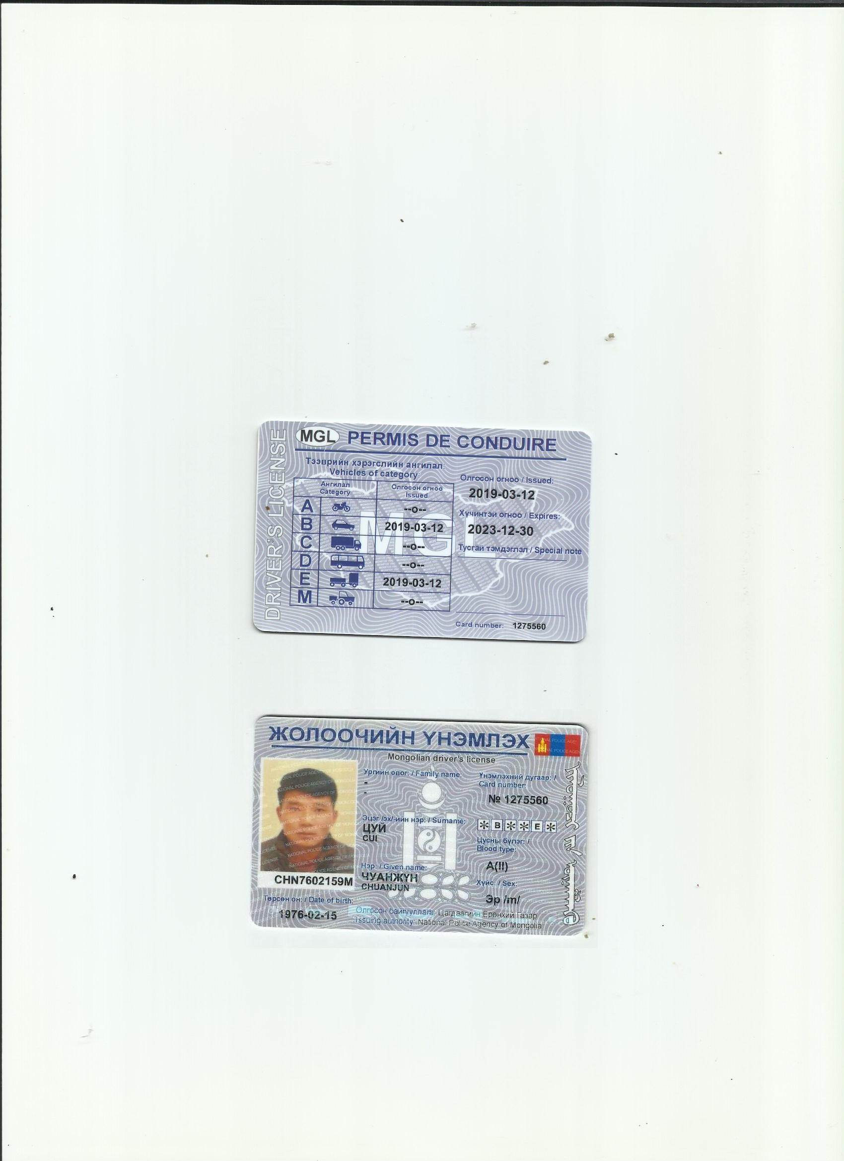 咸陽阿博爾翻譯公司 您身邊的翻譯 咸陽市區(qū)隨到隨譯 咸陽車管所認(rèn)可 蒙古駕照翻譯模版