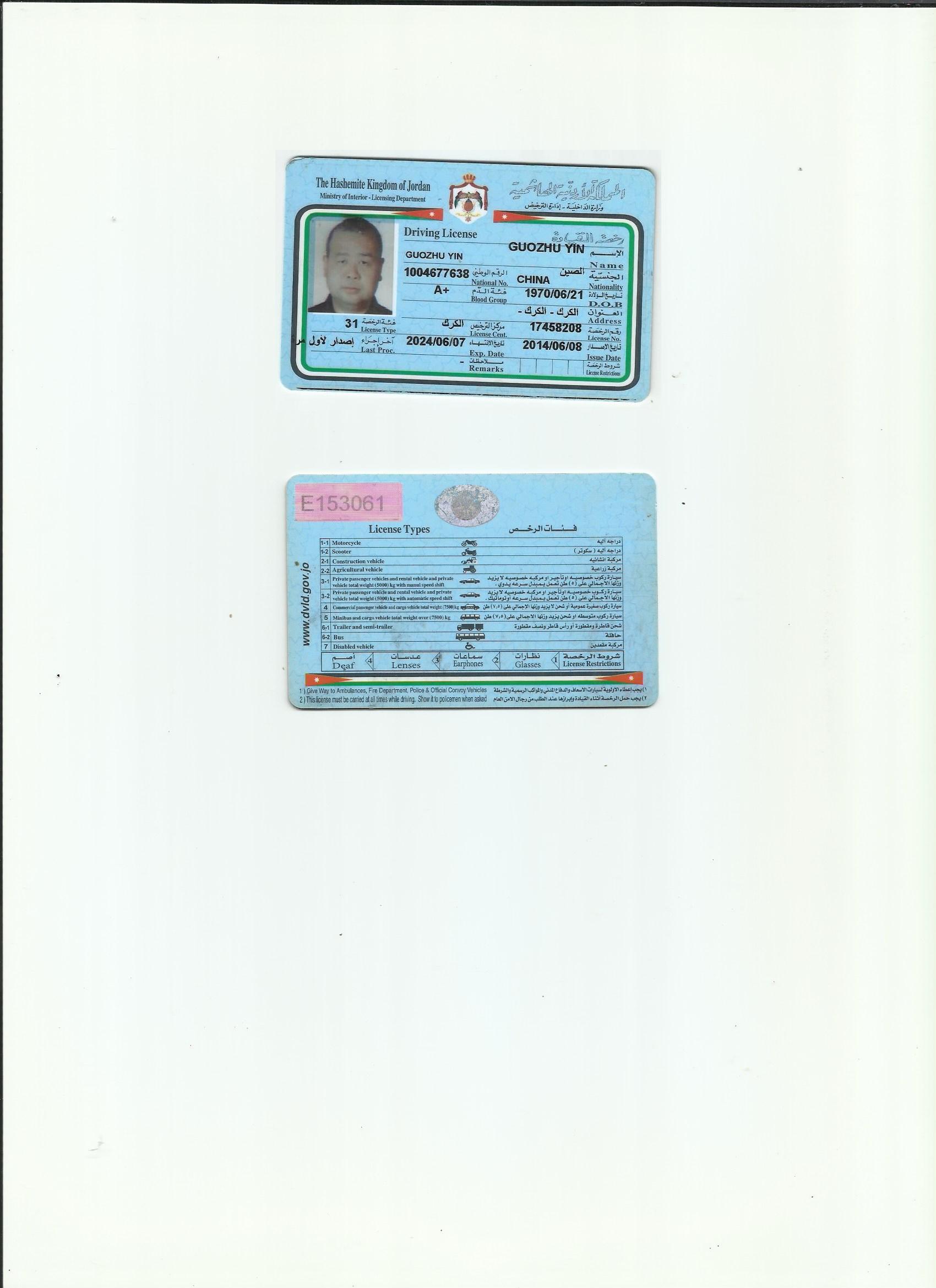 咸陽(yáng)翻譯 政府指定咸陽(yáng)翻譯 公安 車管所 約旦駕照翻譯模版