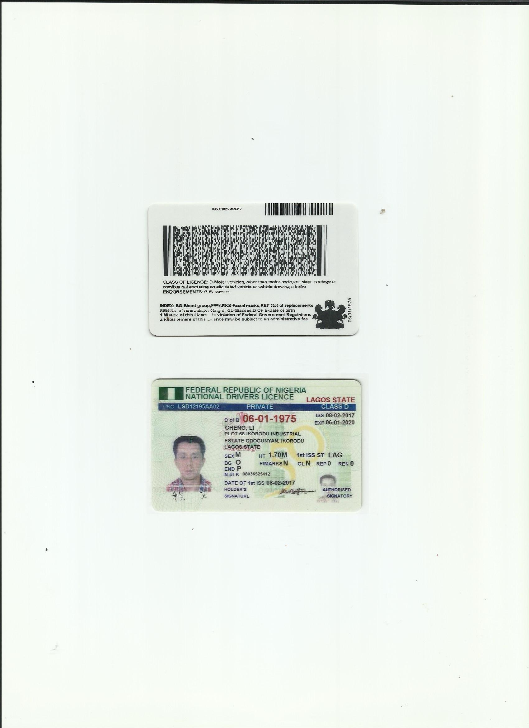 咸陽證件翻譯蓋章 成績單翻譯 戶口薄翻譯 駕照翻譯 尼日利亞駕照翻譯模版