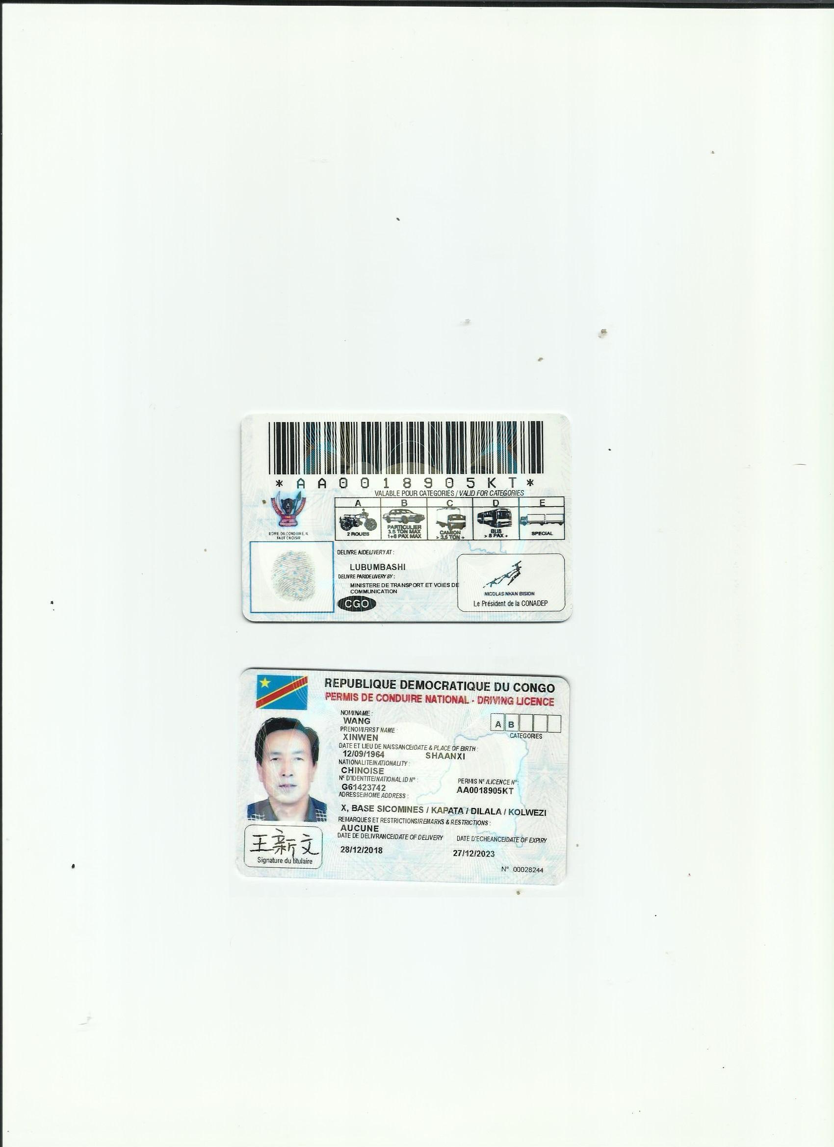 咸陽證件翻譯蓋章 成績單翻譯 戶口薄翻譯 駕照翻譯 剛果金駕照翻譯模版