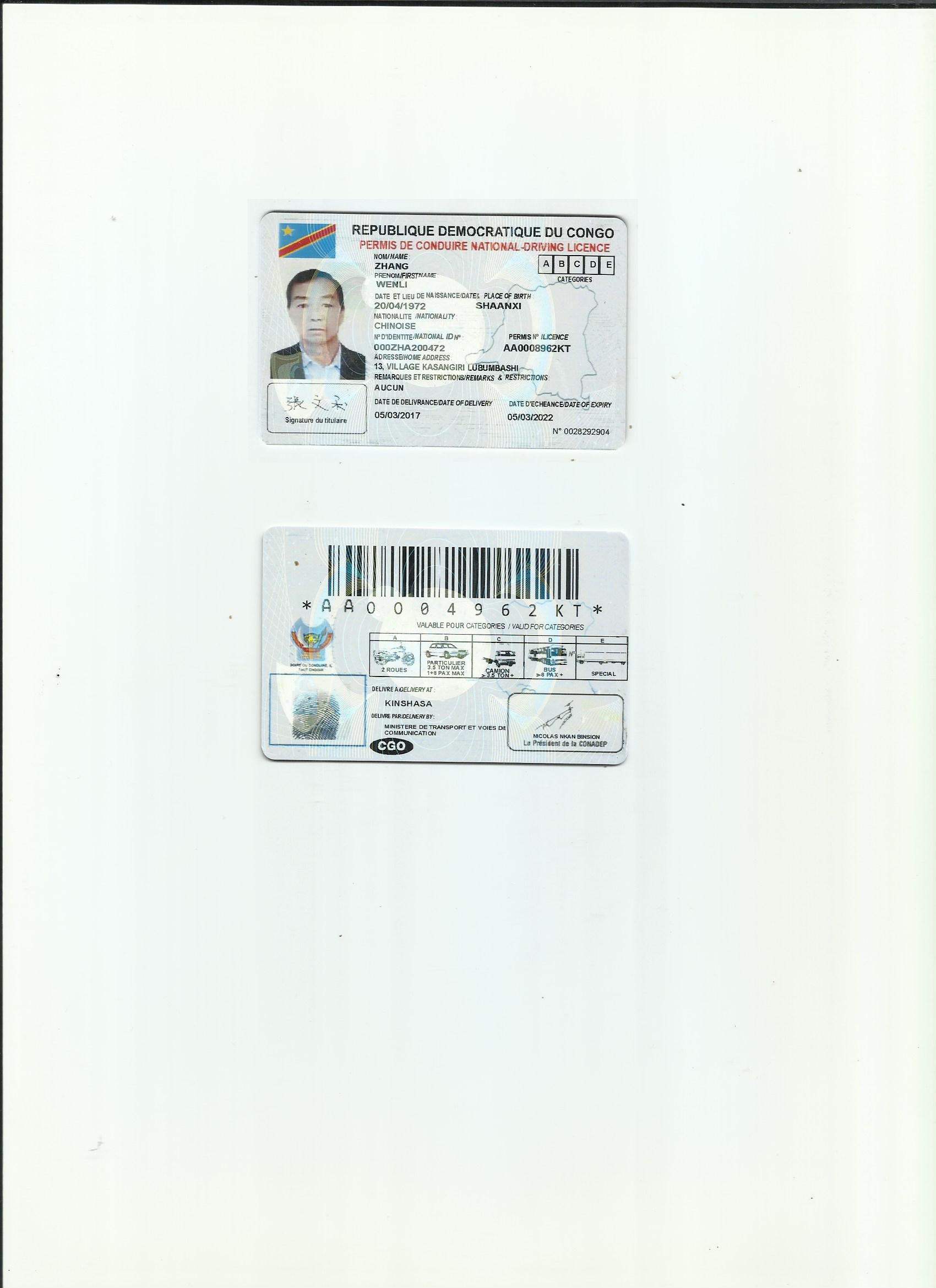 咸陽證件翻譯蓋章 成績單翻譯 戶口薄翻譯 駕照翻譯 剛果金駕照翻譯模版