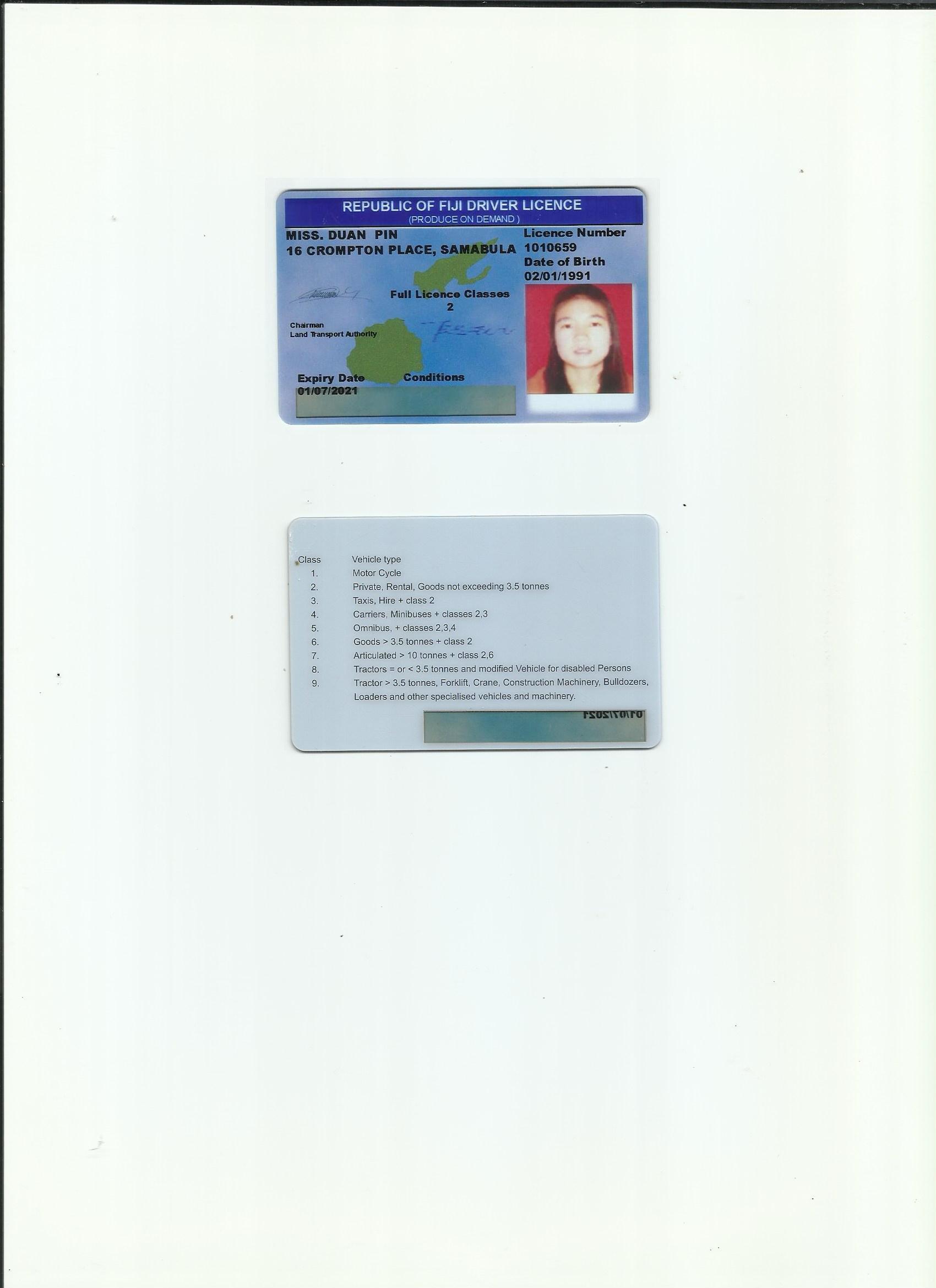 咸陽證件翻譯蓋章 成績單翻譯 戶口薄翻譯 駕照翻譯 斐濟駕照翻譯模版