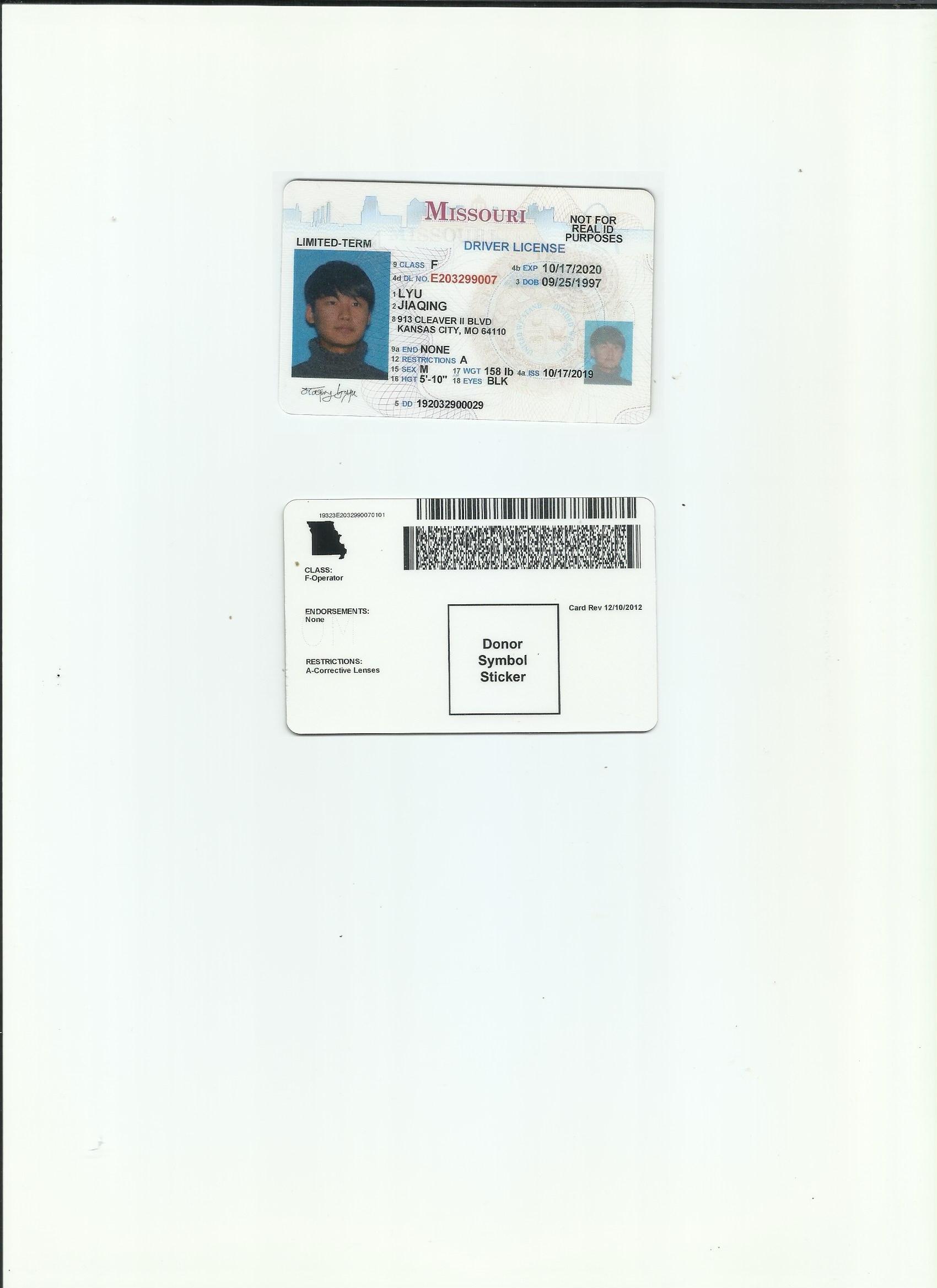 咸陽證件翻譯蓋章 成績單翻譯 戶口薄翻譯 駕照翻譯 美國密蘇里州駕照翻譯模版